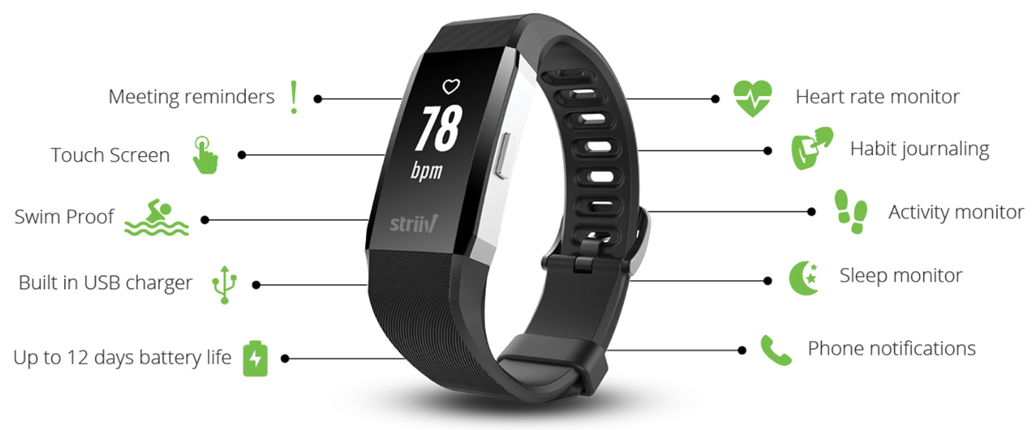 The key features of the Striiv Apex HR are: