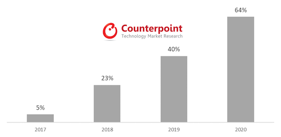 No surprises for guessing that "Apple and Samsung are likely to lead the pack for this new technology adoption," with the usual set of Chinese players like "Oppo, vivo, Xiaomi, OnePlus, Huawei and others" no doubt trying to catch up as quickly as possible